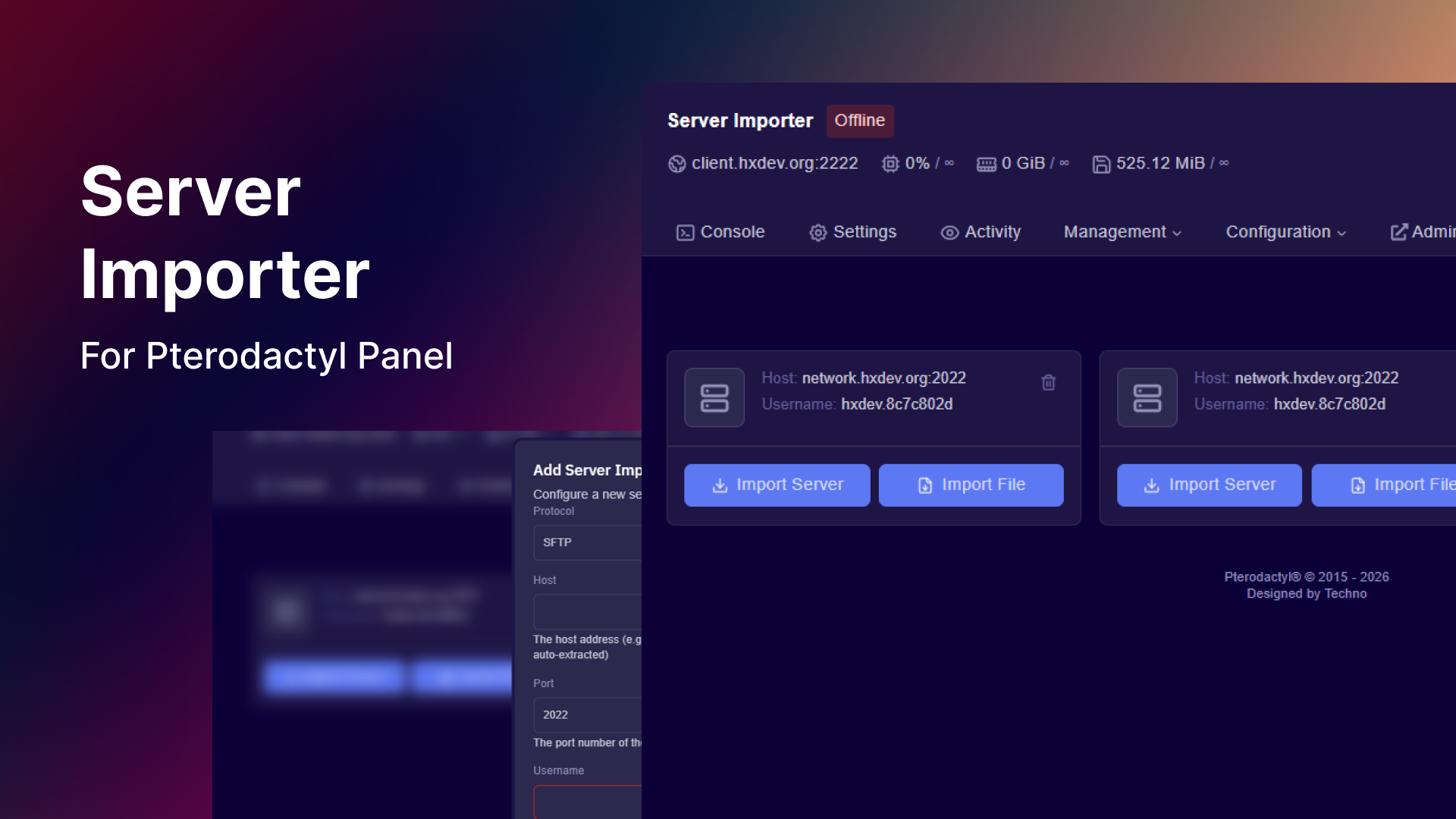 A Pterodactyl panel Addon to import server or files from a sftp/ftp server.