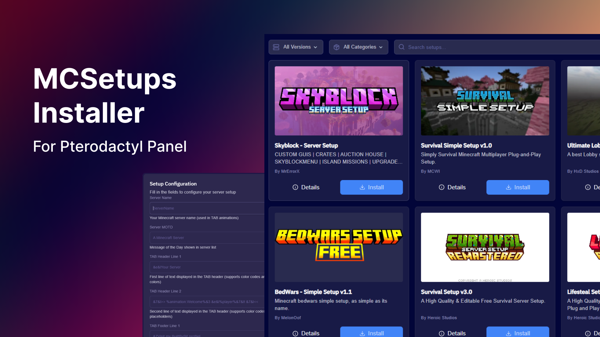 Tailored addons and panel extensions for your Pterodactyl setup – startup tools, integrations, and panel tweaks.